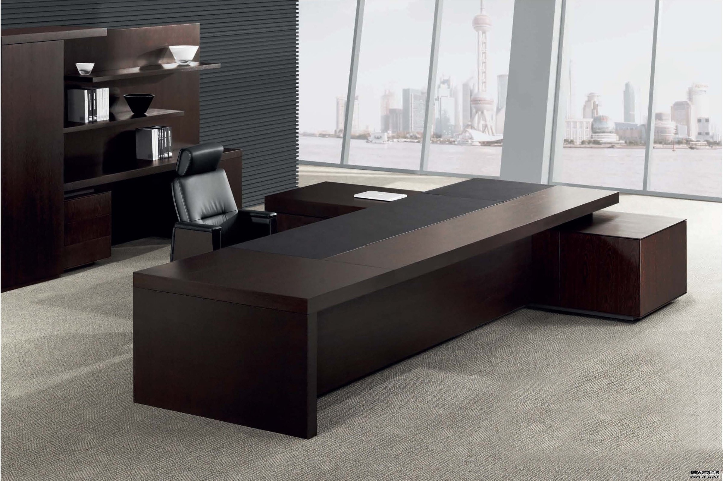 商品简介:实木大班台,尽显尊贵! 本品基材为优质环保中密度纤维板,环保露水河颗粒板基材,游离甲醛含量符合E1标准,甲醛释放量≤9mg/100g。面层使用美国进口一级胡桃木木皮,木皮厚度0.6mm,德国BMB进口五金件,油漆采用德国 “易涂宝”系列油漆,充分保证产品具有较好耐磨、耐温性能,不含苯。