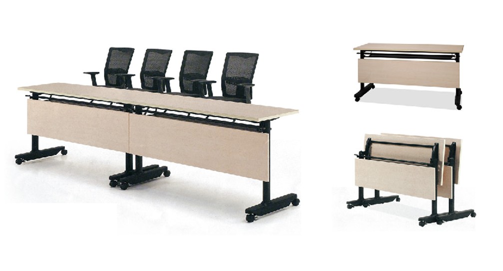 商品简介:板式会议条桌,可折叠,,时尚简约,经济实惠! 基材为优质环保中密度纤维板,或环保露水河颗粒板基材,游离甲醛含量符合E1标准,甲醛释放量≤9mg/100g。表面使用防滑耐磨三聚氢氨饰面板,德国BMB进口五金件。