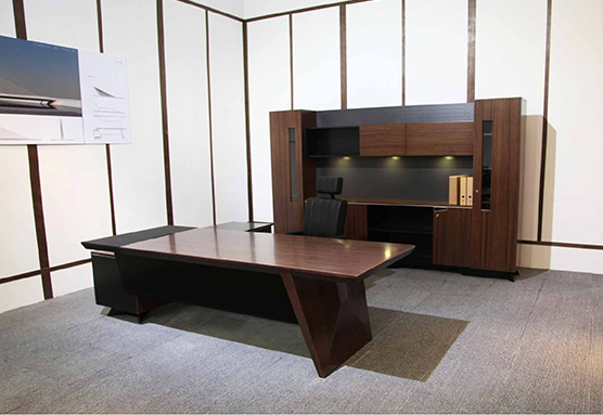 商品简介:实木大班台,尽显尊贵! 本品基材为优质环保中密度纤维板,环保露水河颗粒板基材,游离甲醛含量符合E1标准,甲醛释放量≤9mg/100g。面层使用美国进口一级胡桃木木皮,木皮厚度0.6mm,德国BMB进口五金件,油漆采用德国 “易涂宝”系列油漆,充分保证产品具有较好耐磨、耐温性能,不含苯。